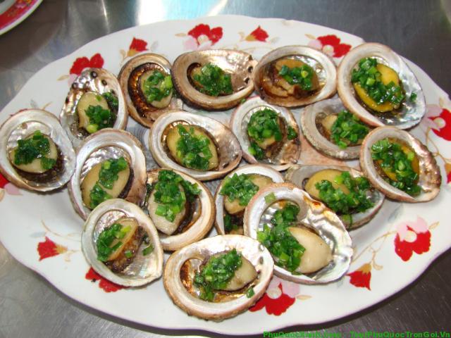 Biển thiên đường Phú Quốc có 2 loại bào ngư: bào ngư loại 9 lỗ và bào ngư cổ khiếu. Trong đó, bào ngư cổ khiếu là loại lớn hơn và có giá trị dinh dưỡng cao hơn. Có rất nhiều món ăn được chế biến từ bào ngư như Bào ngư nướng mỡ hành thơm nồng nàn với những con bào ngư tươi ngon đang xì xèo trên bếp than hồng không khách tham quan nào có thể cưỡng lại được mùi thơm của nó.