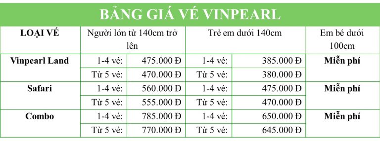 Như đã nói ở trên, vào dịp lễ 2/9 sắp tới, khi mua vé vinpearlland Phú Quốc thì trẻ em cao dưới 1m được miễn phí hoàn toàn. Trong khi đó giá vé dành cho người lớn chỉ còn 475.000 đồng. Tiết kiệm được rất nhiều so với giá cũ trước đây. Quan trọng là khi mua từ 5 vé, giá chỉ còn 470.000 đồng. Nên khách du lịch đi cùng các bạn bè, gia đình thì càng đông sẽ càng có lợi. Tương tự, vé trẻ em dưới 1m4 cũng chỉ còn 385.000 đồng. Mua 5 vé trở lên chỉ còn 380.000 đồng. Bạn có thể tham khảo giá vé Vinpearl, vé safari lẫn vé combo trong bảng dưới đây.