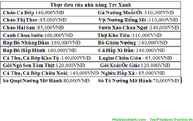 Địa chỉ: 03 Trần Hưng Đạo, Thị Trấn Dương Đông, Phú Quốc, Kiên Giang. Nhà hàng Tre Xanh Phú Quốc tọa lạc trong không viên rộng mặt tiền đường Trần Hưng Đạo trung tâm Thị Trấn Dương Đông đối diện chợ đêm. Khuôn viên của nhà hàng được thiết kế theo phong cách của người miền Tây với mái lá lợp, xung quanh trồng nhiều cây tre, cây trúc tạo không gian thoáng đãng, mát mẻ, hài hòa với thiên nhiên xa lánh những nhộn nhịp của Phố Thị. Khi đi du lịch Phú Quốc và đến nhà hàng Tre Xanh, thực khách sẽ được phục vụ những món ăn đặc sản của Phú Quốc hoặc những món ăn dân giã của người Phú Quốc với những loại hải sản biển vô cùng tươi ngon.