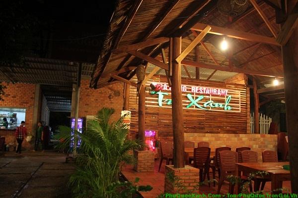 Địa chỉ: Số 136, Đường 30/4, Khu phố I, Dương Đông, Phú Quốc, Kiên Giang. Điểm cộng đầu tiên cho nhà hàng chính là không gian vô cùng rộng rãi và thoáng mát. Thiết kế chia ra thành nhiều khu với nhiều loại hình khác nhau tùy theo sở thích và mục đích của khách như là phòng máy lạnh, bàn ghế ngoài trời, chòi nhỏ,…Cách phục vụ của nhân viên cũng rất chu đáo và nhiệt tình, mọi thắc mắc của thực khách về món ăn đều được chỉ dẫn rõ ràng.