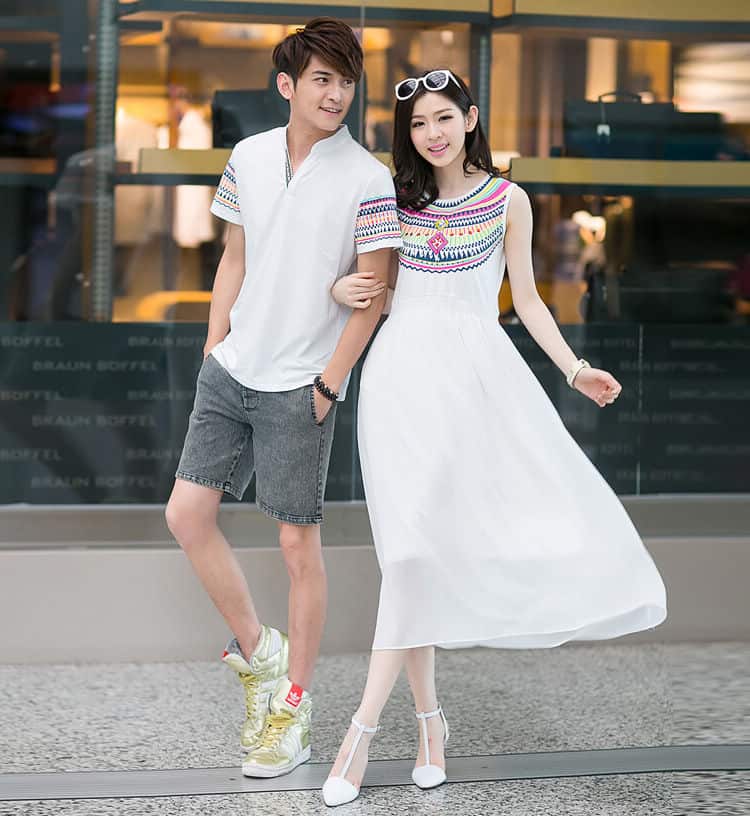 Không chỉ diện đồ đôi đi biển. Các bạn có thể diện đồ đôi khi chụp ảnh cưới tại cơ sở trồng và sản xuất tiêu xanh hay ở những khu vui chơi, mua sắm. Chú rể có thể diện sơ mi tay ngắn cùng quần short, giày thể thao. Cô dâu có thể diện đầm không tay loại dài ngay ngắn. Cùng một đôi giày đế xuồng hay cao gót xinh đẹp. Là trang phục khá phổ biến của nhiều cặp đôi khi đi chụp ảnh cưới Phú Quốc.