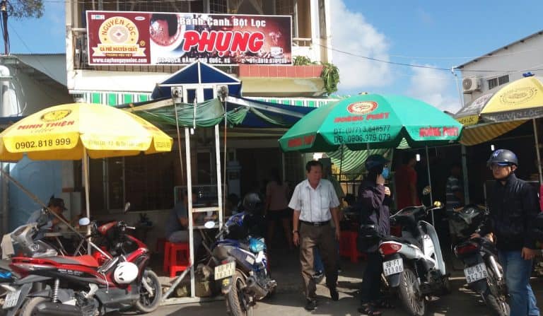 Bánh canh Phụng là nơi cho khách tham quan đi du lịch Phú Quốc trọn gói muốn tìm một địa điểm ăn sáng ngon lành. Nằm ở số 24 Bạch Đằng, thị trấn Dương Đông. Bánh canh Phụng là một trong những quán ăn nhỏ phổ biến trên đảo ngọc. Khách tham quan nên đến đây sớm vì quán bán hết rất nhanh. Giá khoảng 30.000 đồng cho một phần 1 người ăn.