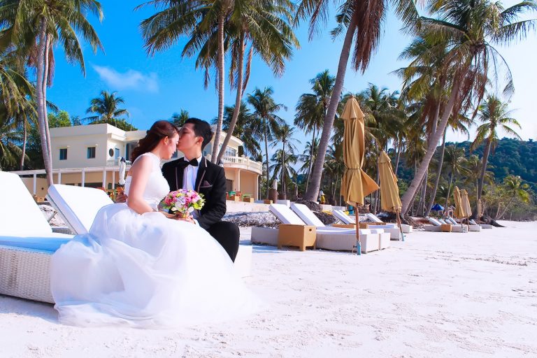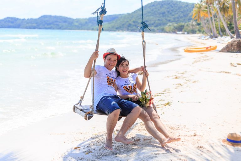 Với những cặp đôi yêu thích vẻ đẹp ngọt ngào và lãng mạn của biển, tôi xin gợi ý cho bạn một trong nhưng bờ biển đẹp nhất của Phú Quốc đã đốn tim biết bao bạn trẻ tại đây cùng với những bức hình độc đáo, đẹp tựa như tranh đó chính là Bãi Sao. Với bãi cát dài trắng mịn đến 7km, làn nước biển xanh trong màu ngọc bích, những hàng dừa nghiêng mình ra biển, những cánh chim hải âu bay lượn trên bầu trời đảm bảo bạn sẽ có bộ ảnh cưới có một không hai.