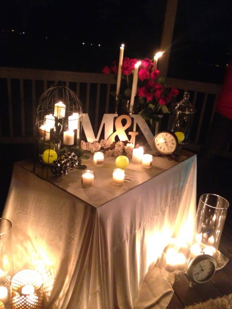Khi hai bạn ăn tối lãng mạn tại khách sạn, resort. Có thể dùng nến điện tử trang trí hay set up một cảnh thật lung linh và lãng mạn. Chắc chắn sẽ tạo bất ngờ cho đối phương và màn cầu hôn cũng trang trọng hơn. Dù là trên bờ biển Phú Quốc, quầy bar, hồ bơi, vườn cây, phòng khách sạn,…Những cây nến hình thù ngộ nghĩnh, đủ thứ ánh sáng lung linh sẽ khiến không gian thêm ấm cúng. Chắc chắn người được cầu hôn sẽ xúc động đến phát khóc.