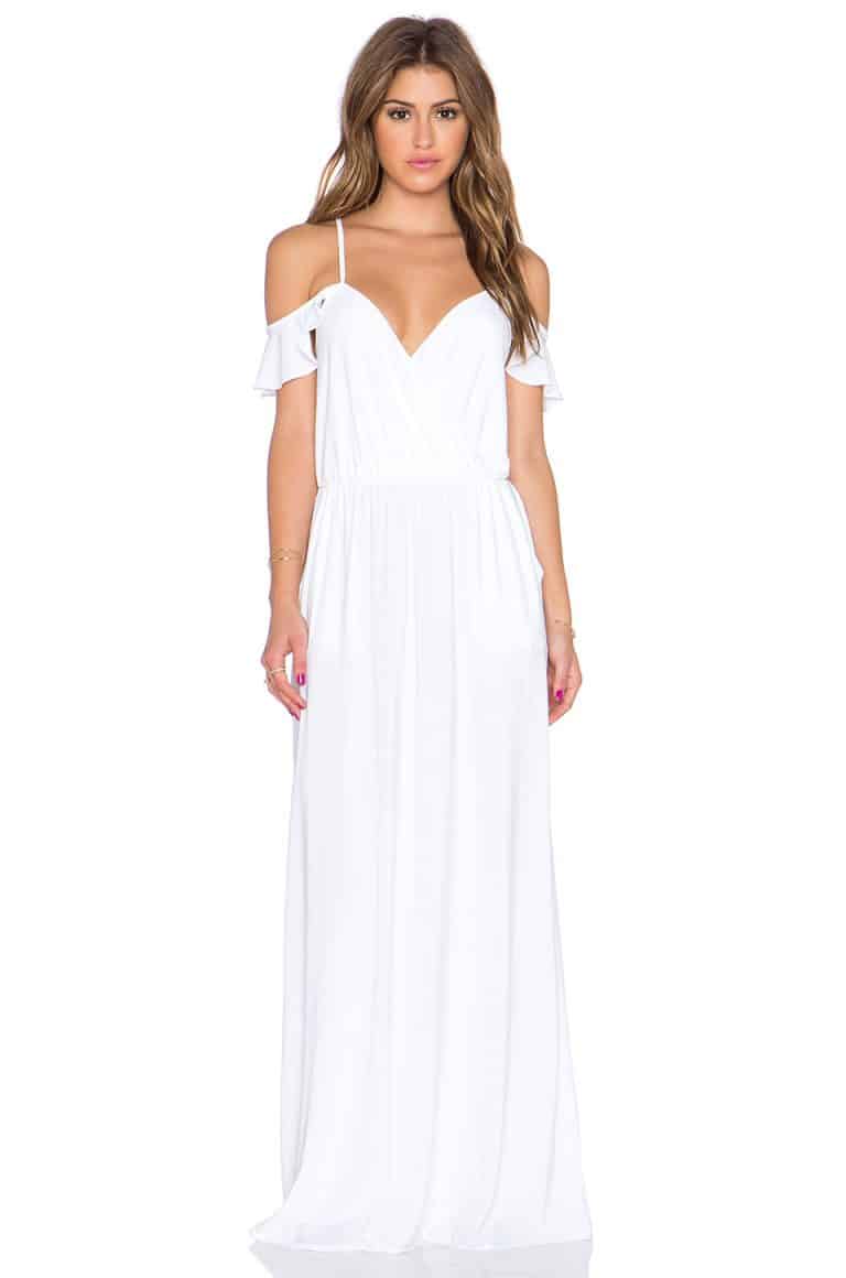 4.Đầm maxi trắng chữ V khoe vai