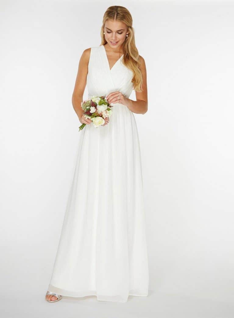 Thích hợp cho những cô dâu e thẹn, ngọt ngào và đầy niềm vui. Đầm maxi không tay nhưng phối ren ở phần cổ. Phần ngực tạo dáng trái tim tạo điểm nhấn tinh tế. Đầm suông dài nhưng cũng đủ để lộ đôi giày công chúa xinh xắn. Với chiếc đầm này, cô dâu có thể chụp theo phong cách nữ thần mùa xuân. Với gương mặt xinh đẹp lúc nào cũng tươi cười rạng rỡ như mùa xuân về. Kết hợp thêm bó hoa cưới mùa xuân xinh đẹp. Cùng kiểu tóc cột đơn giản, nữ tính nhưng tượng trưng cho nữ thần. Thích hợp chụp ở những địa điểm ngọt ngào như Bãi Sao, Bãi Ông Lang, vinpearlland.