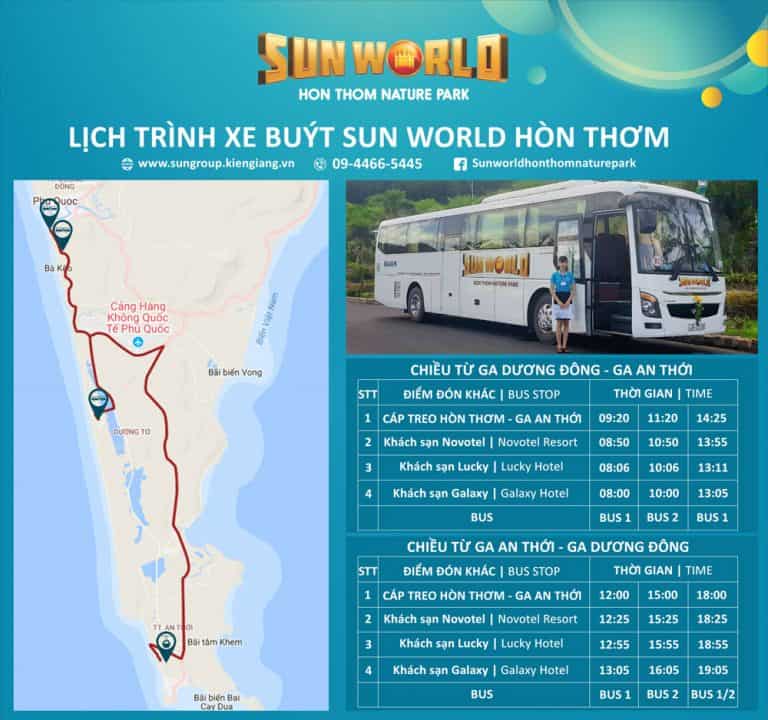Từ tháng 5, các tuyến xe buýt đưa đón bạn từ ga Dương Đông đến ga An Thới và ngược lại đã chính thức hoạt động. Với 3 địa điểm chính là khách sạn Novotel, khách sạn Lucky, khách sạn Galaxy. Nên khách du lịch và gia đình sẽ tiết kiệm được nhiều tiền di chuyển khi du lịch tại Phú Quốc. Đặc biệt là khi đến Hòn Thơm.